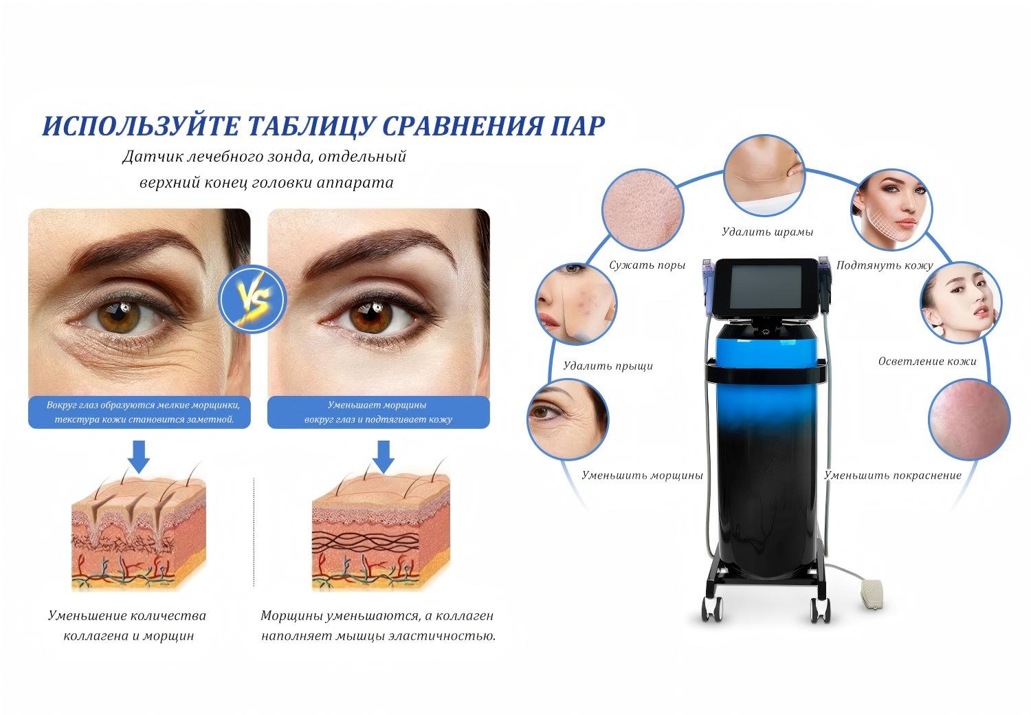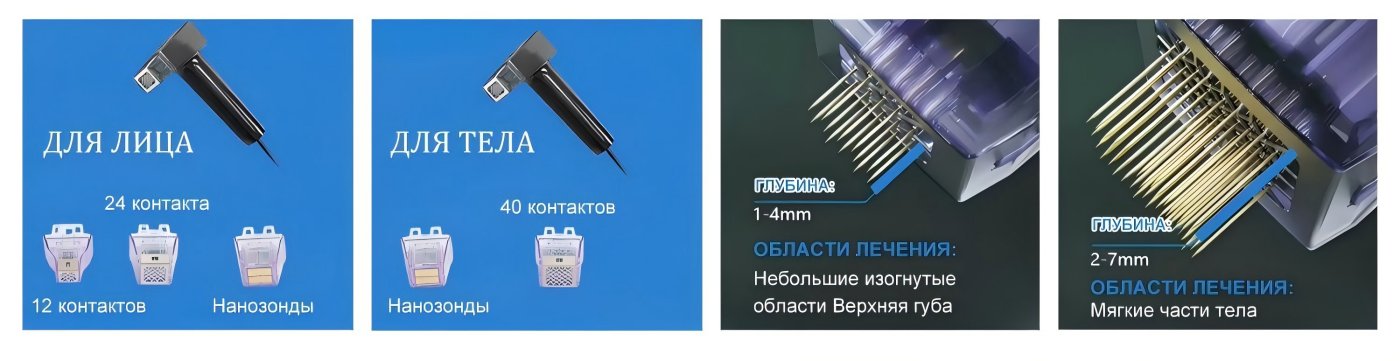 Гибкие сменные зонды позволяют проводить точное лечение в соответствии с различными потребностями кожи.